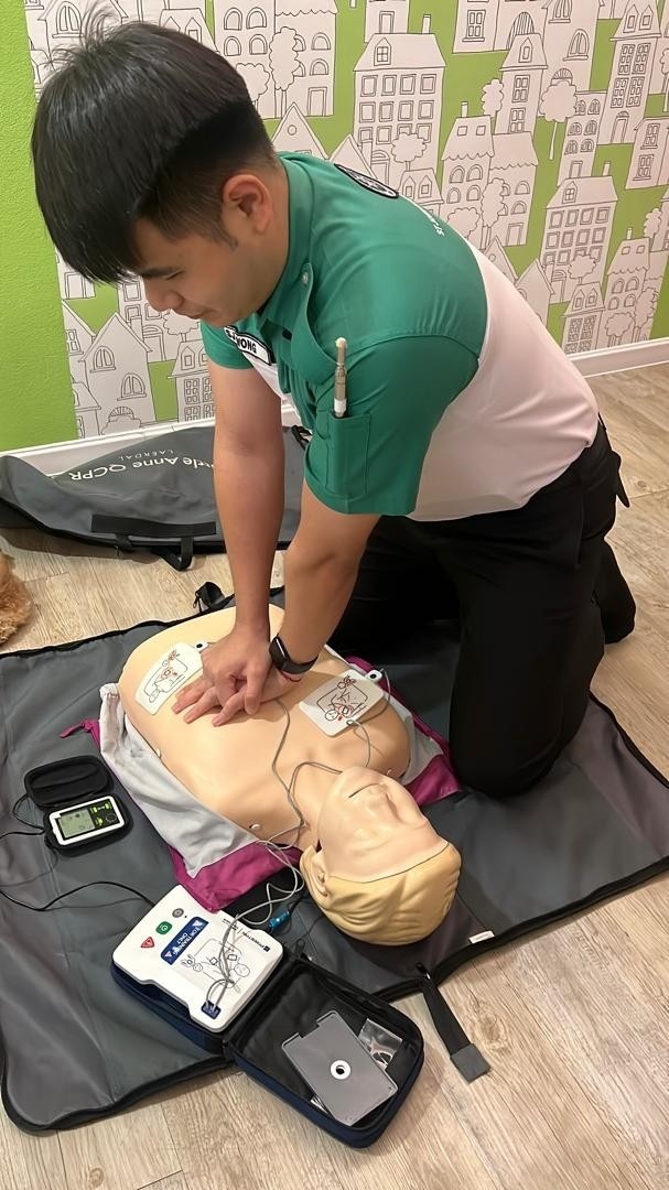 此次培训不仅强化了团队的急救与心肺复苏技能,也进一步提升了冷静应对、团队合作与应急准备能力,体现了关怀(Compassion)、专业(Professionalism)与尊重(Respect)的核心价值。